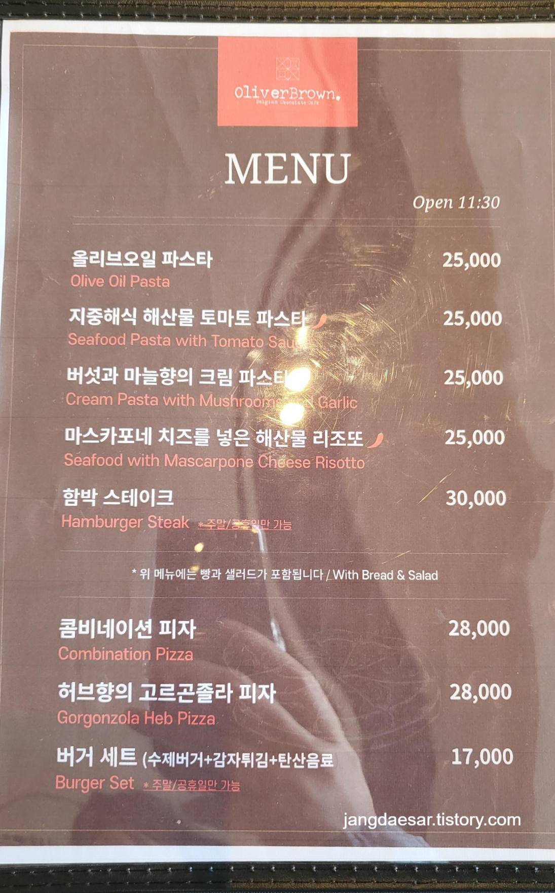 올리버브라운에서는 피자, 파스타 등 식사를 할 수 있고, 커피와 같은 음료도 마실 수 있다.
