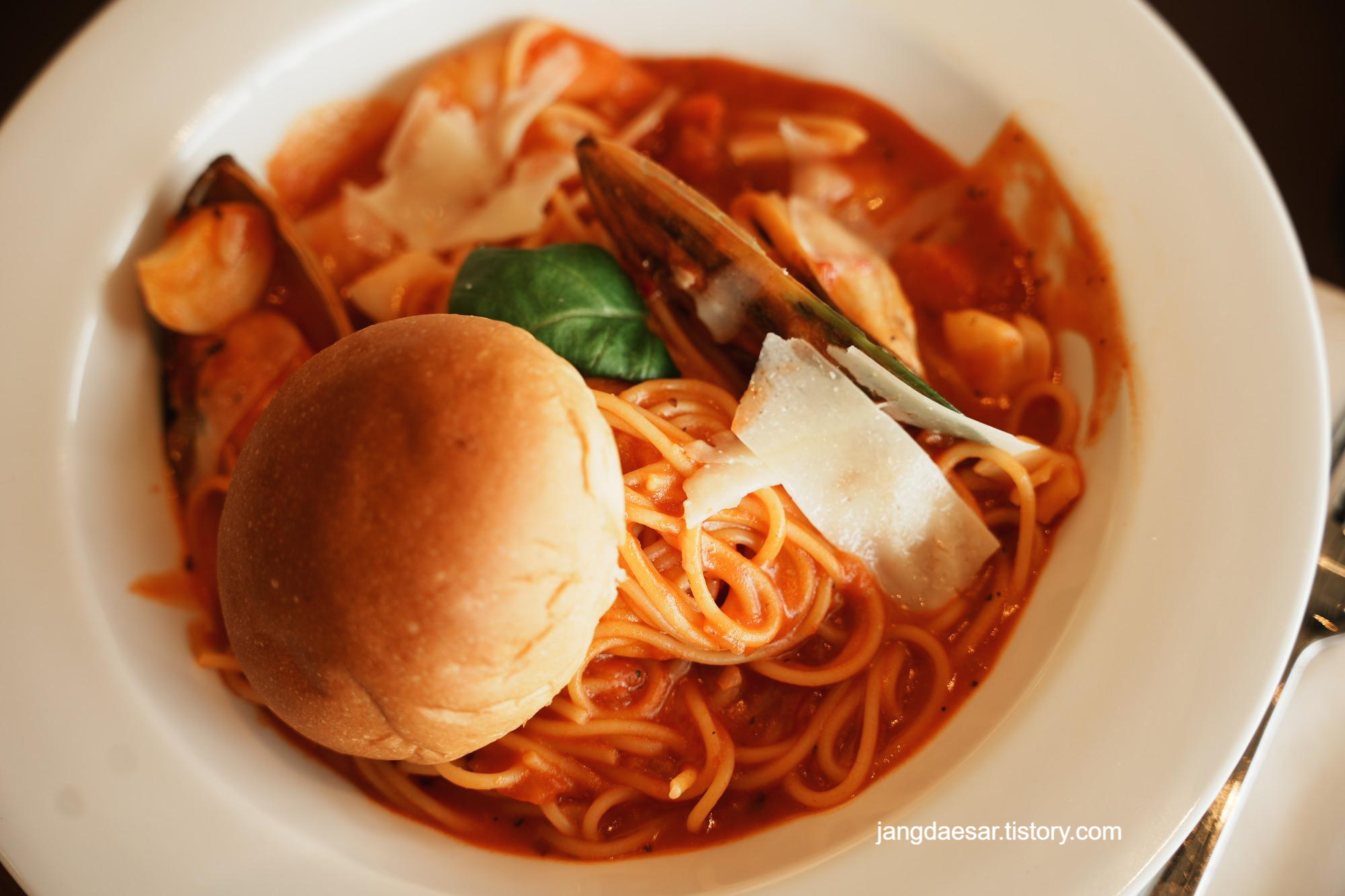 토마토 파스타, 크림 파스타, 콤비네이션 피자, 고르곤졸라 피자 하나씩 주문하였다.