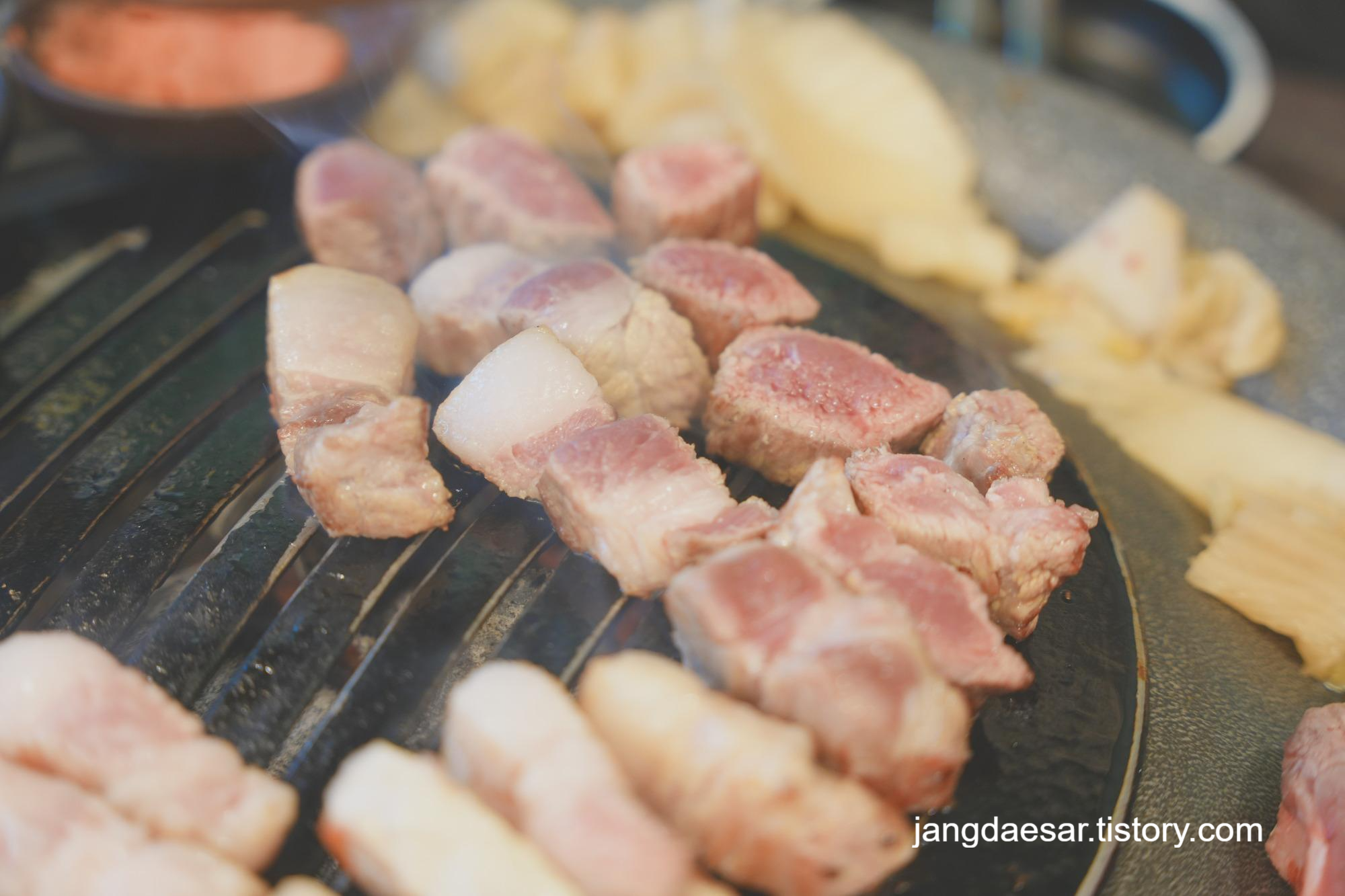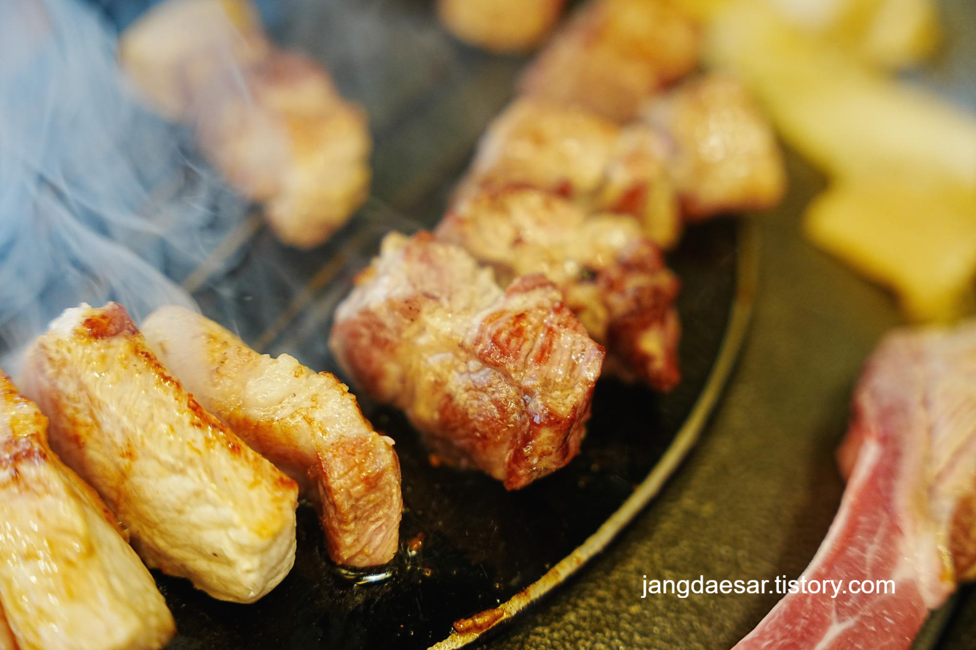 숙련된 직원 분들이 바삐 오가며 고기를 구워준다. 여러 테이블을 오가고 정신이 없을텐데 고기는 전혀 타지 않는다.