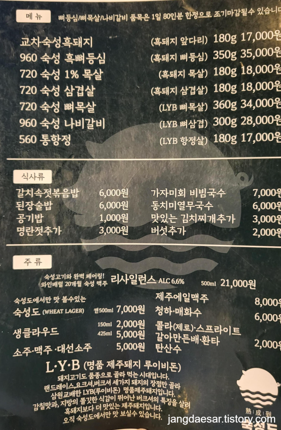 와이프와의 공통적인 의견으로(개인적인 의견입니다..) 이번 제주도에서 먹은 고깃집은 숙성도가 가장 맛있었다는 것에 의견이 일치했다.