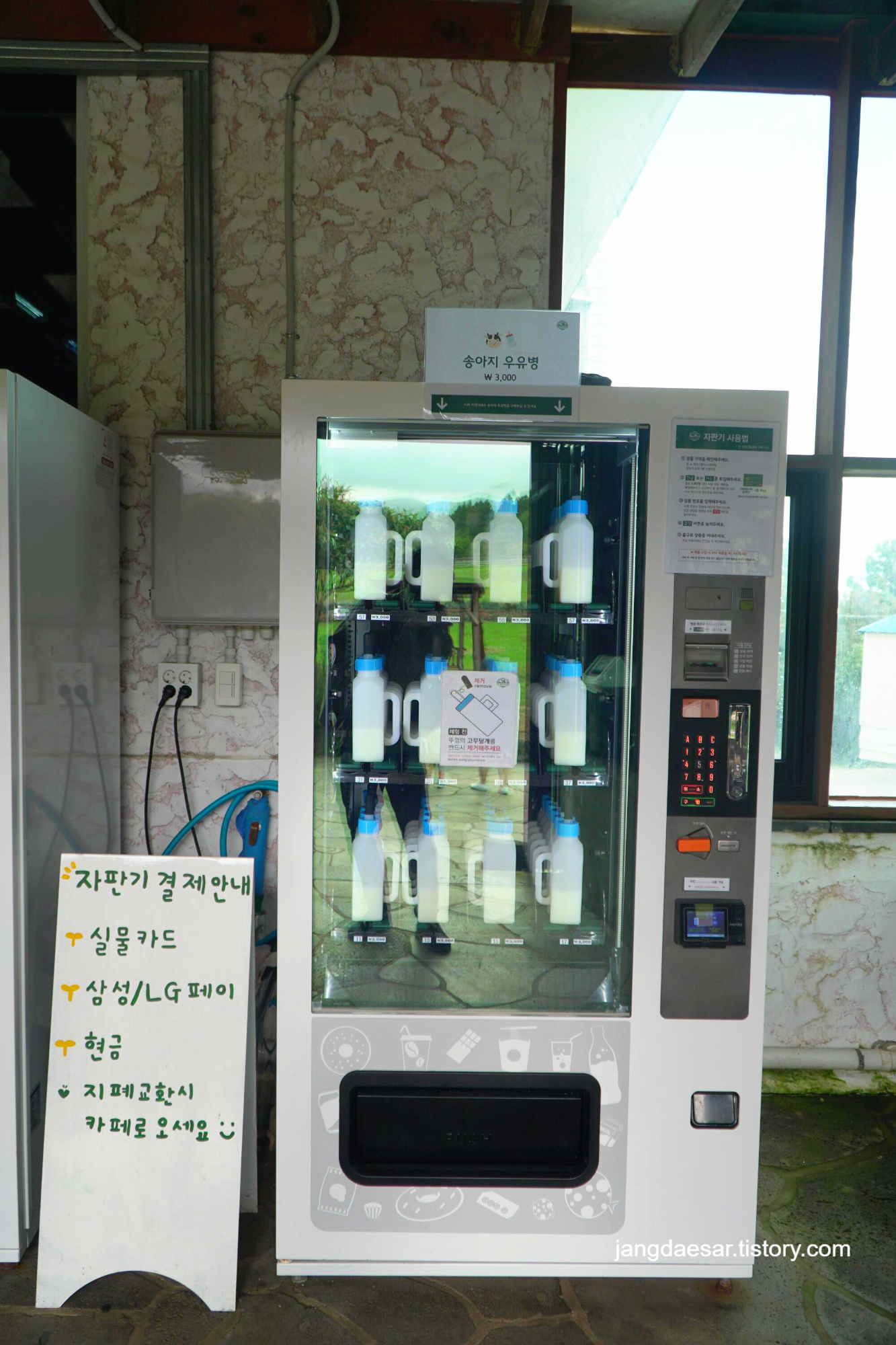 송아지 우유주기는 자판기에서 우유 3,000원, 먹이주기는 2,000원이다.