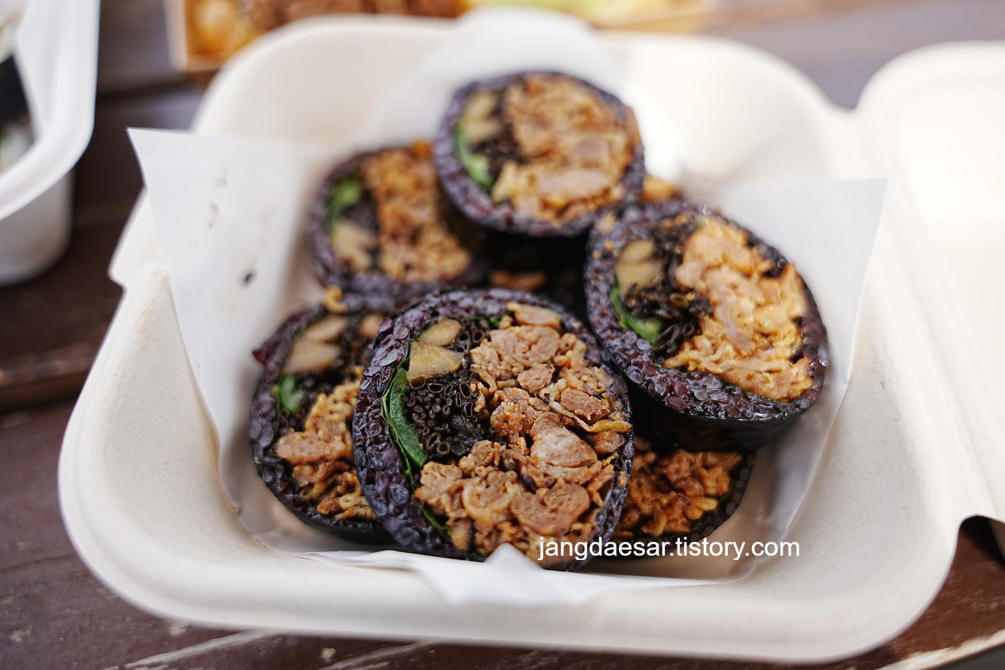 흑돼지가 가득 들어간 김밥이다. 돌담소스랑 함께 먹으면 된다.