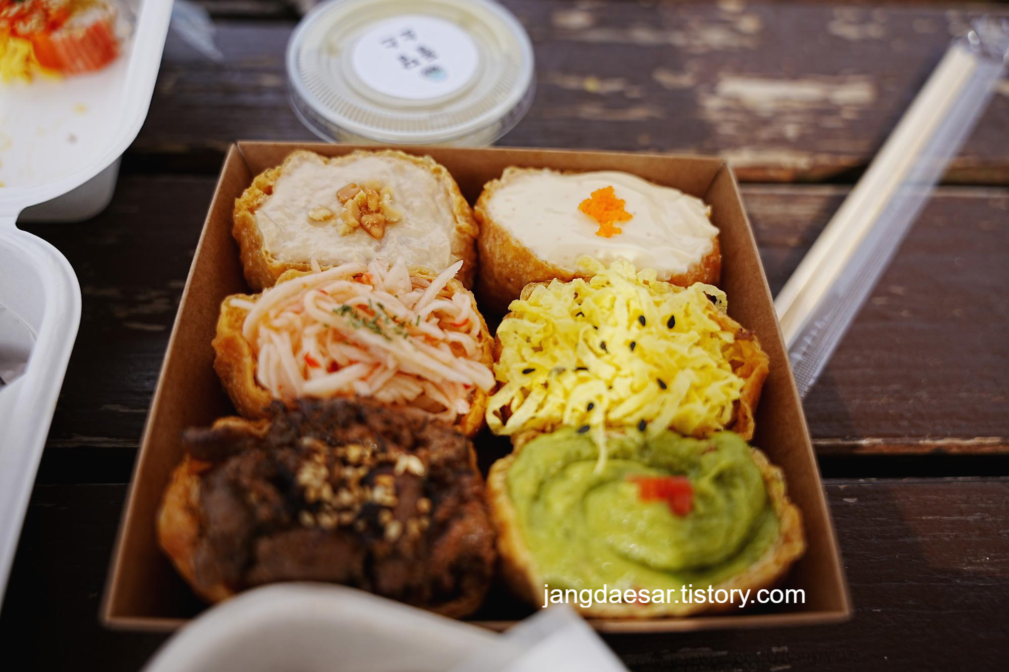 김밥이라고 하지만 하나의 요리와 같다. 특히 또시랑 유부는 다양한 맛과 재료를 느낄 수 있고, 다양한 식감을 느낄 수 있다. 하지만 약간 부드러운 맛이 위주니 돌담김밥이나 야채김밥과 같이 먹으니 밸런스가 괜찮았다.