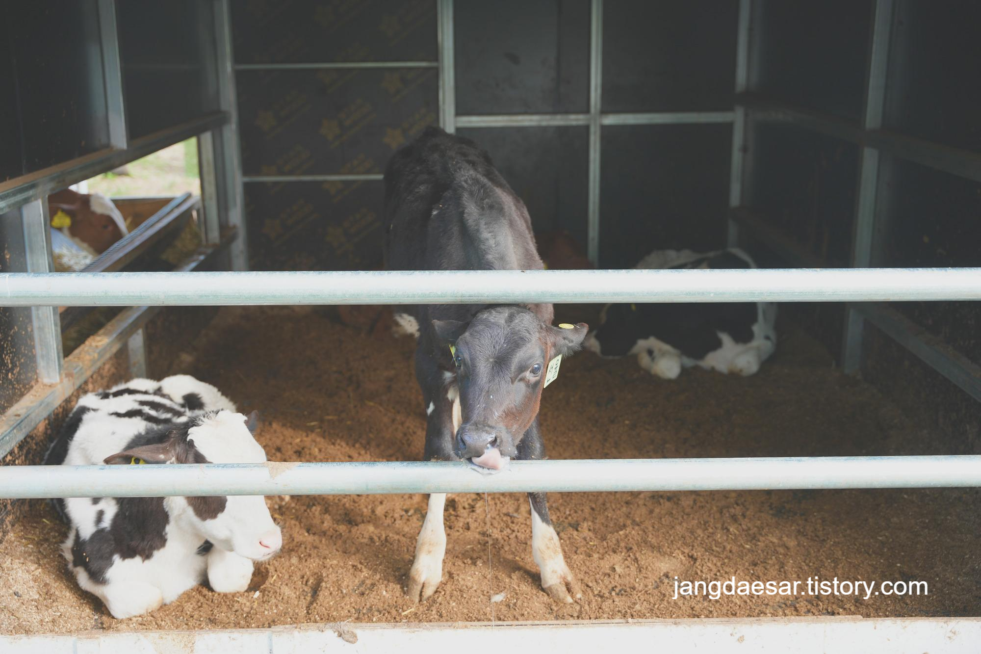 우리가 오후에 가서 그런건지, 소들이 먹이주기 체험을 많이 해서인지 많은 송아지들이 오지 않지만 꼭 한마리씩 와서 열심히 빨아먹었다.