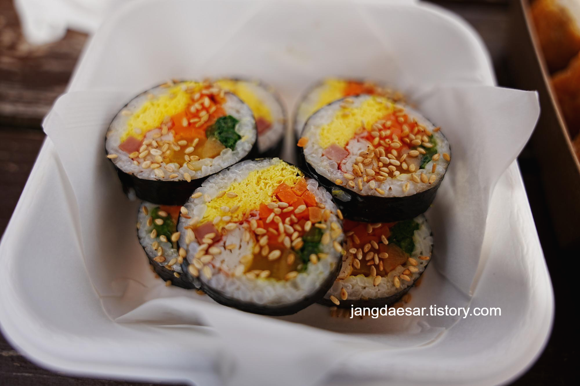 제주또시랑 김밥은 크기도 크고 재료도 아끼지 않고 풍부한 맛을 낸다.