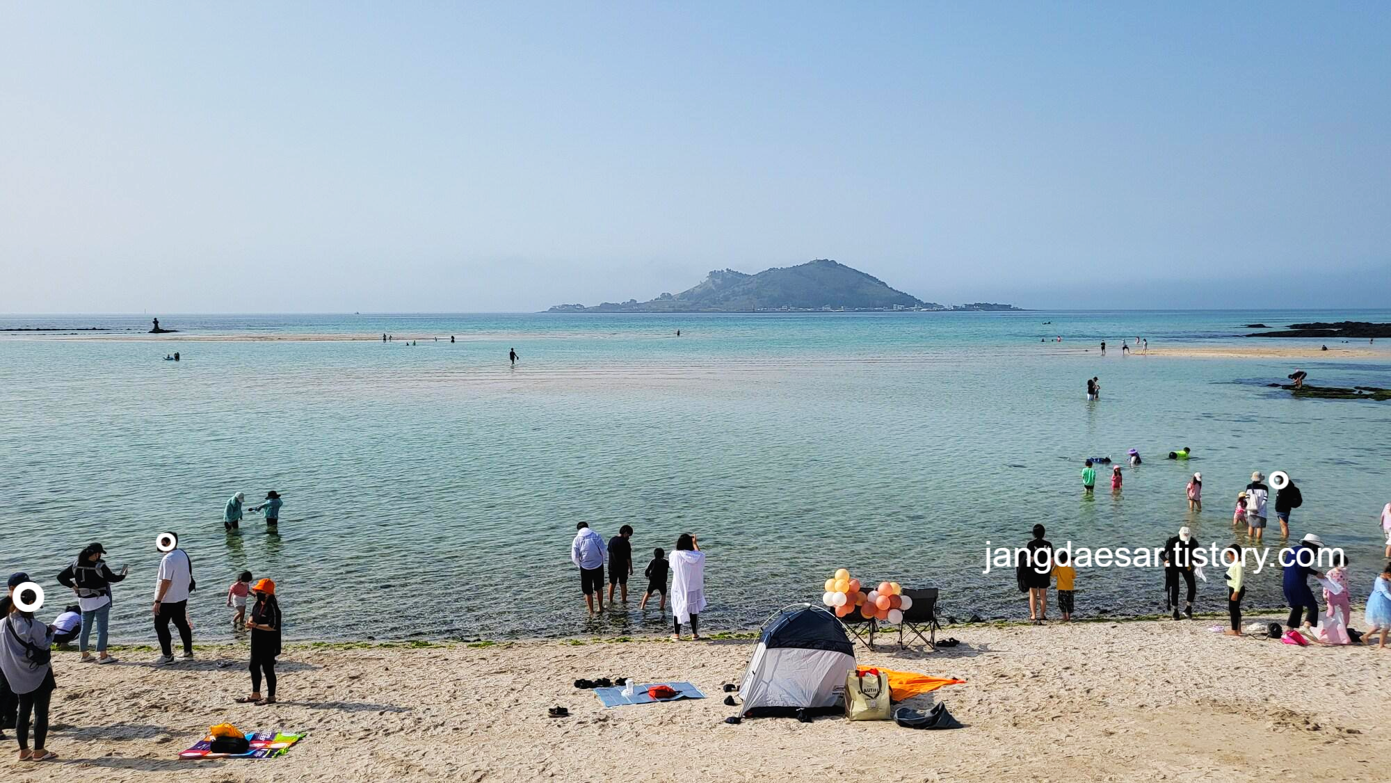 물은 올 때마다 느끼지만, 그 어느 곳보다 깨끗하다. 그리고 우리가 오후 3~4시쯤 갔었는데 그 쩐에 썰물이어서 중간에 땅이 드러나 있었고, 우리가 머무는 동안 밀물이 들어와 조금씩 차 오르기 시작했다.