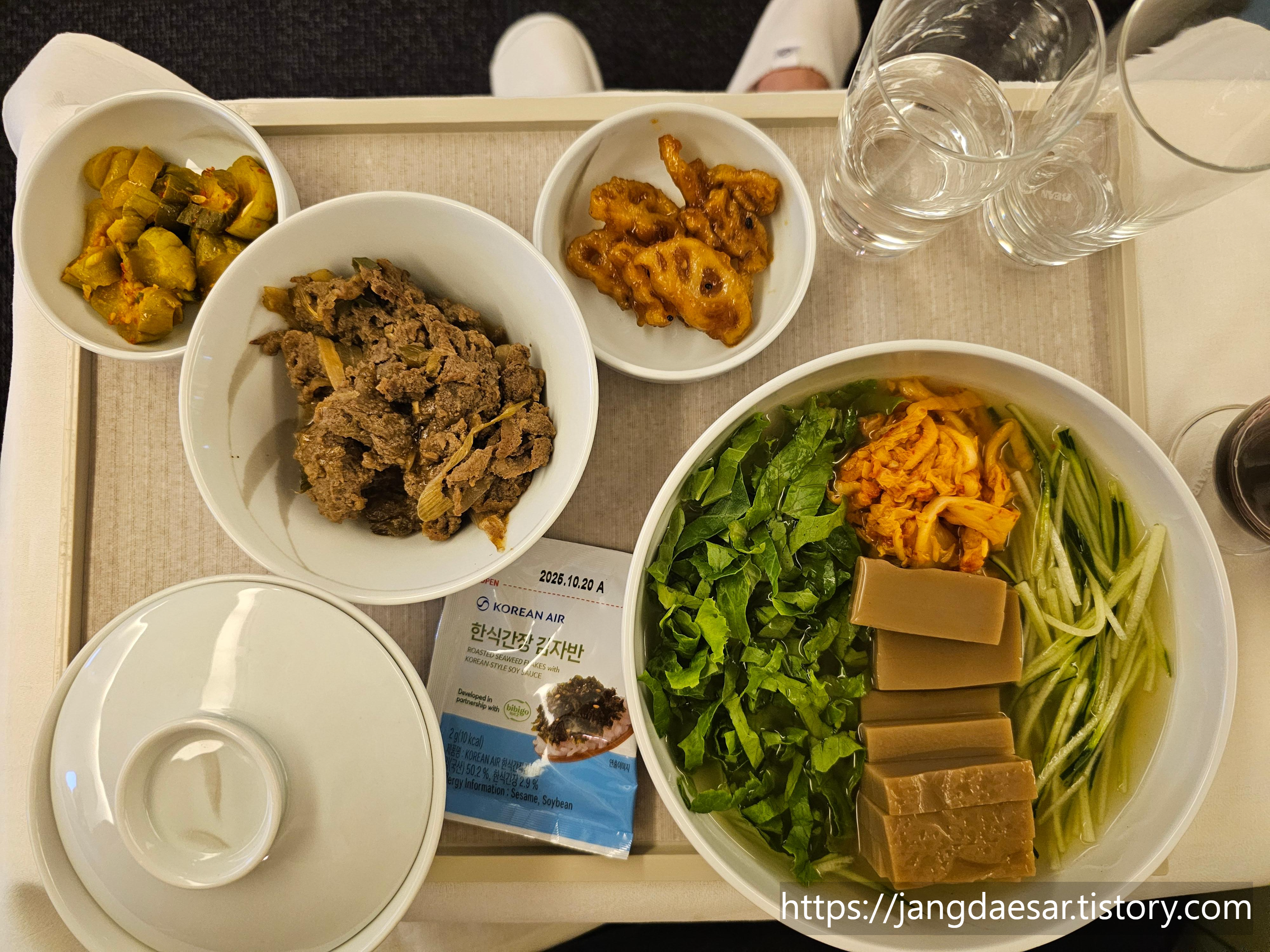 우리가 선택한 기내식은 묵밥과 스테이크!