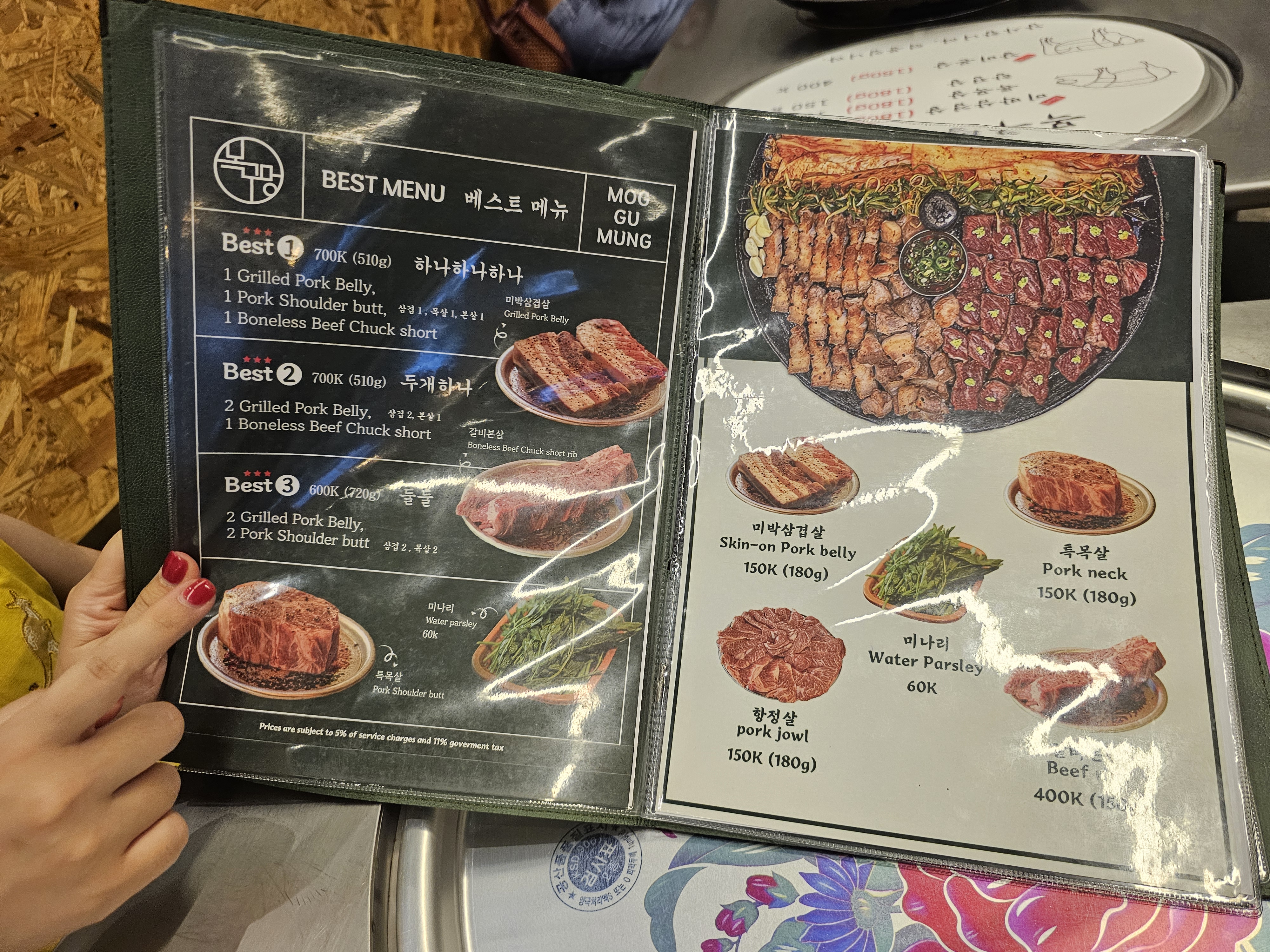 - Best 3 둘둘 세트(삼겹2, 목살2)(720g) / 600,000루피아(약 51,000원) ※ 단품메뉴를 주문해도 가격은 같다