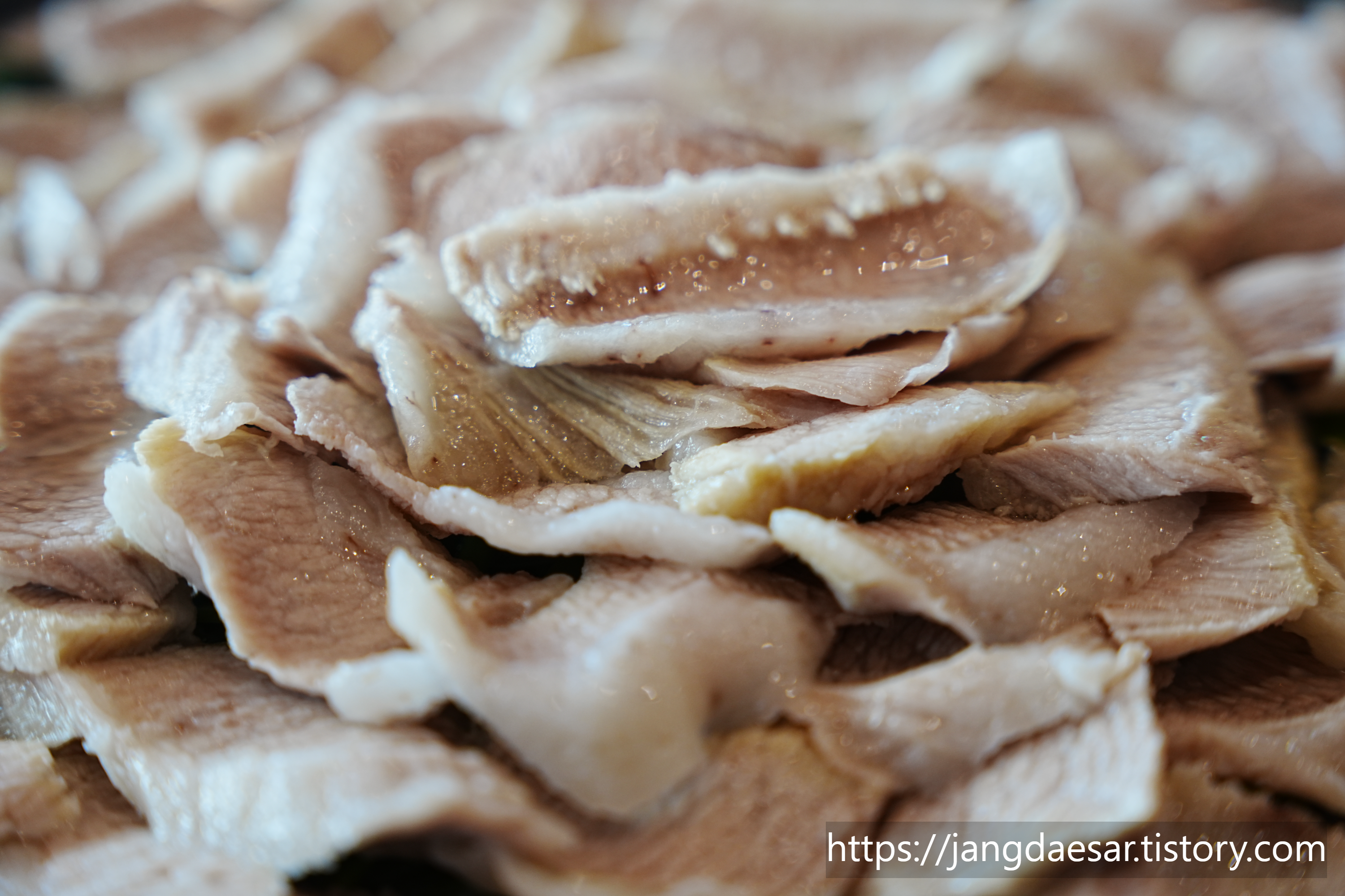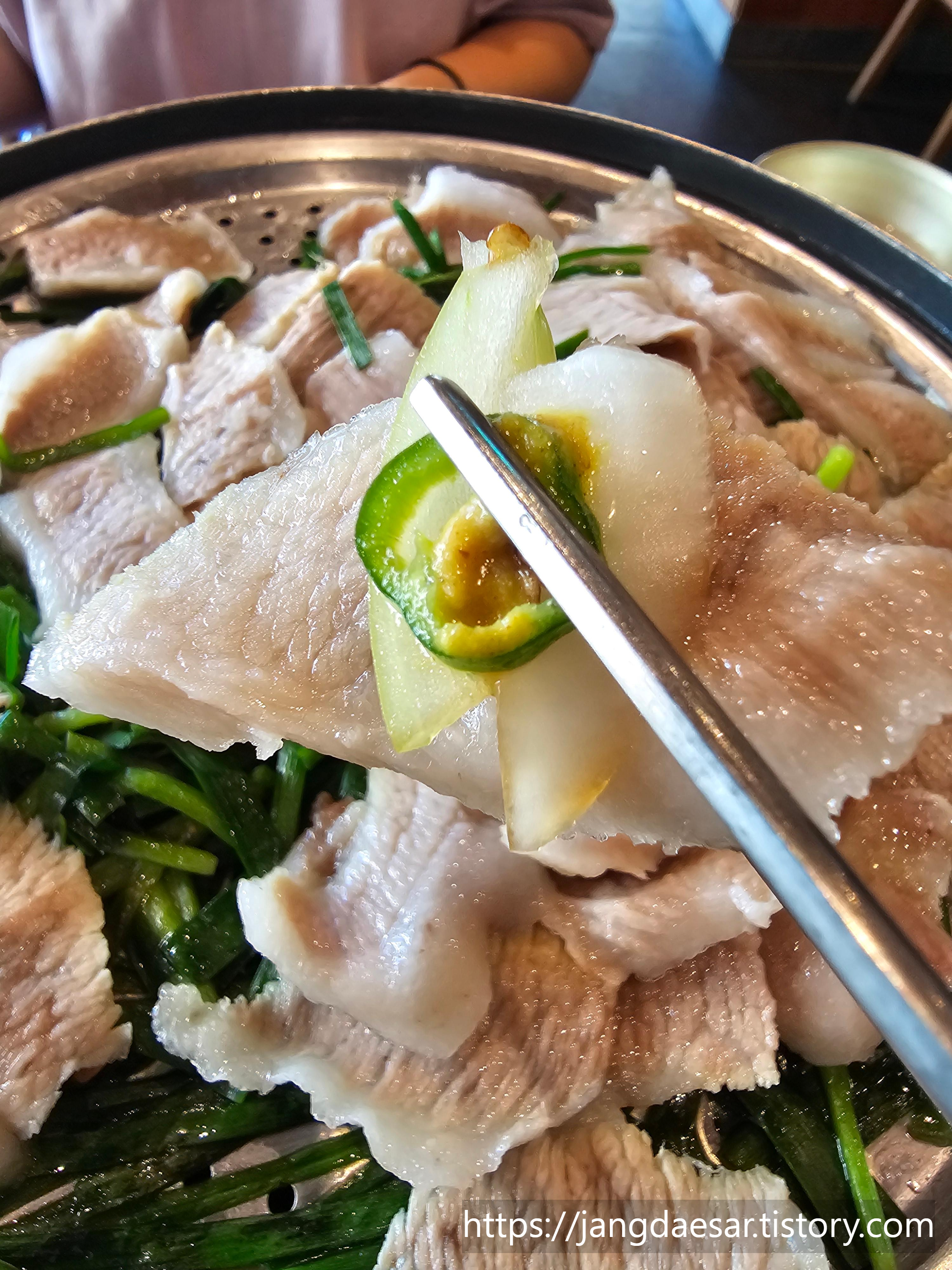 항정살의 쫄깃한 식감은 삼겹살이나 앞다리로 한 수육과는 다른 느낌이었다. 고기 끝을 감싸는 적당한 비계와 먹으니 부드러움과 고소함도 배가 되었다. 글을 쓰는 지금도 사진을 보니 침이 넘어간다. 가장 무섭다는 이제는 알게된 맛!