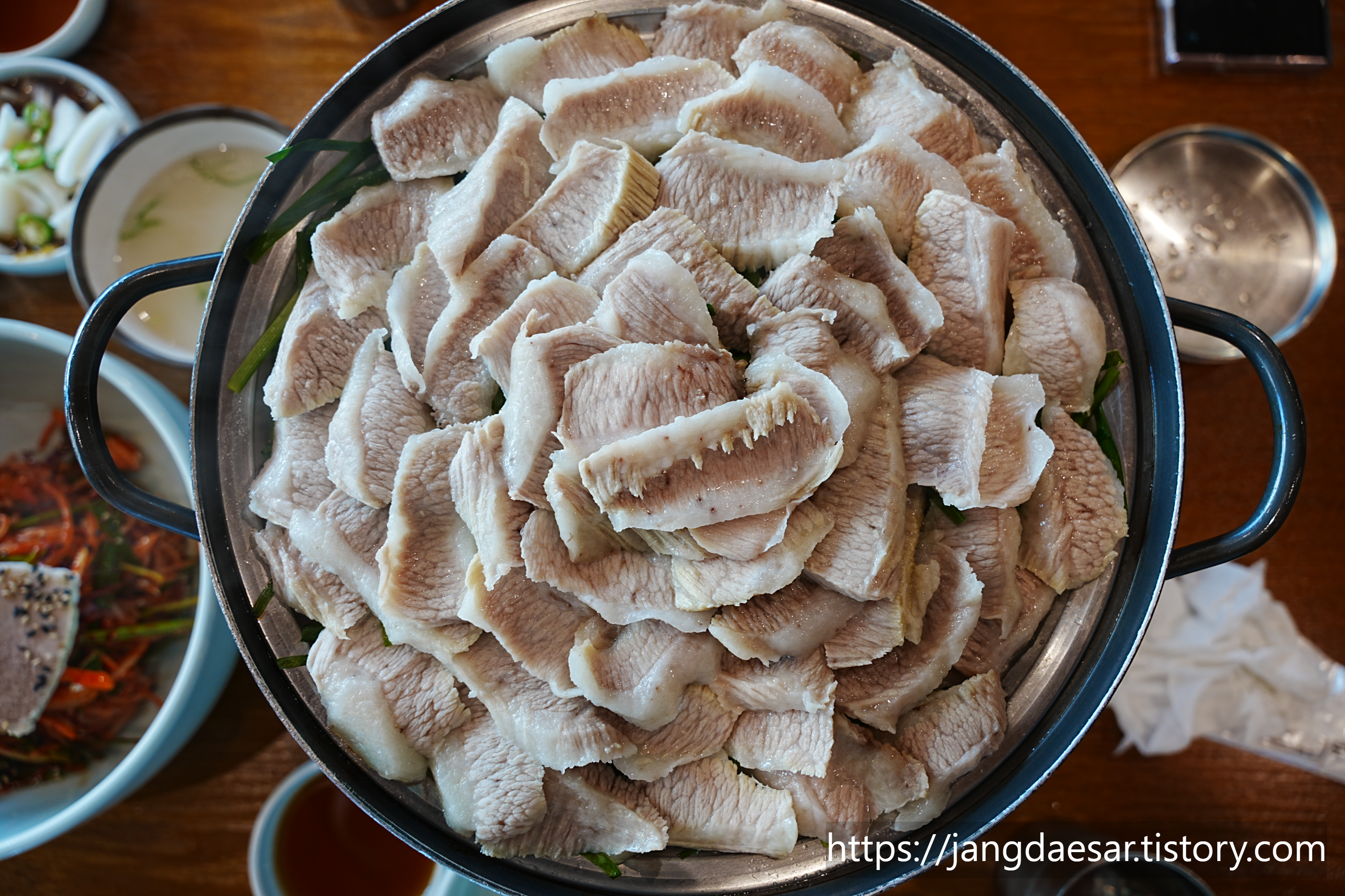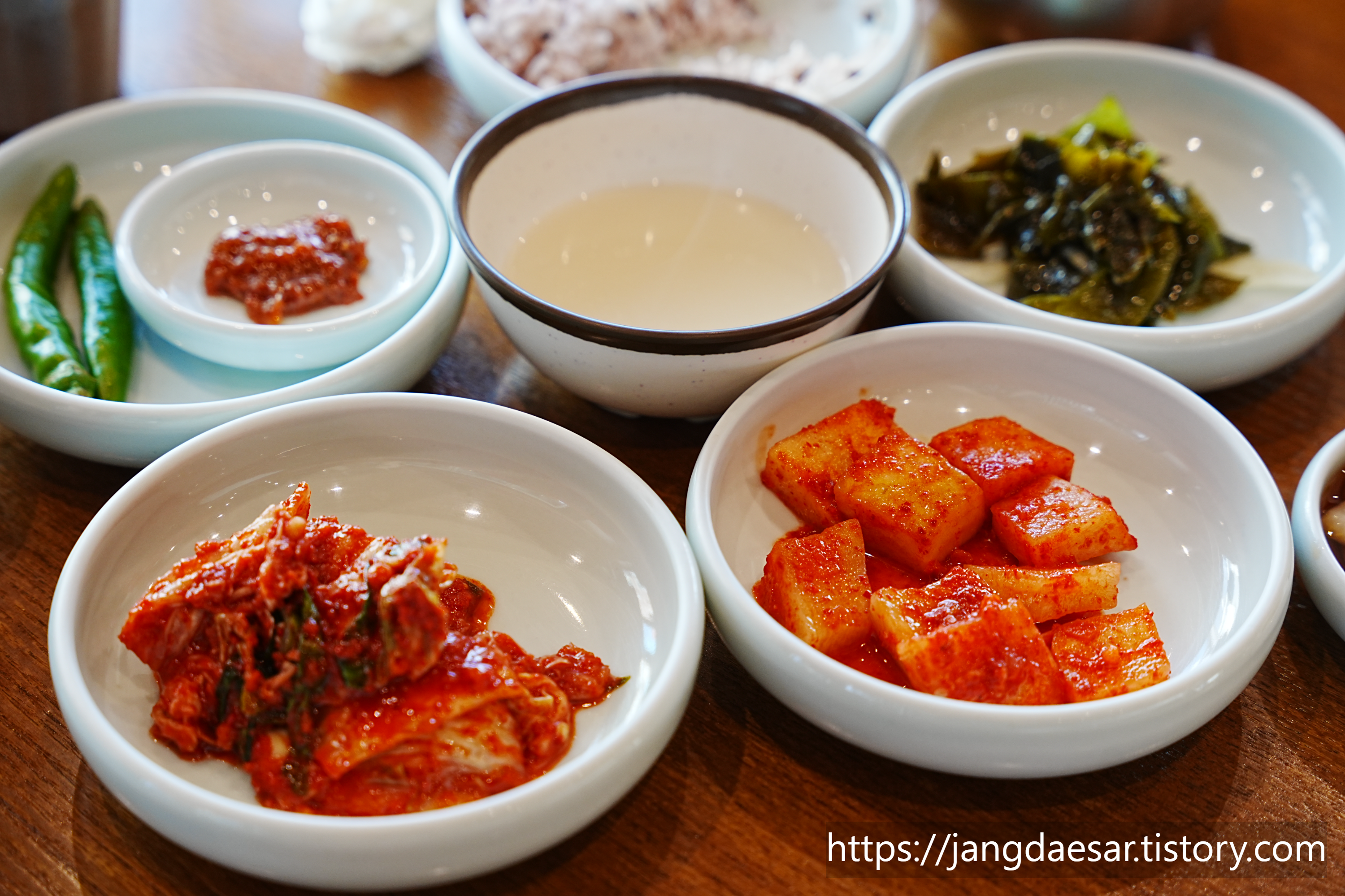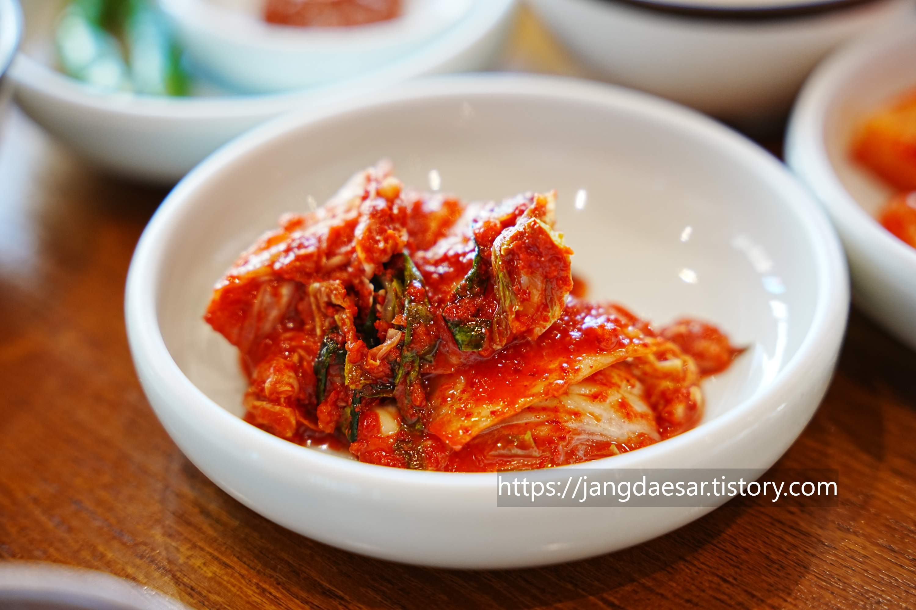 기다리면 먼저 밑반찬을 세팅해주신다. 수육과 먹기에 좋은 깔끔하고 정갈한 반찬들. 특히 김치 빛깔이 아주 좋았다.